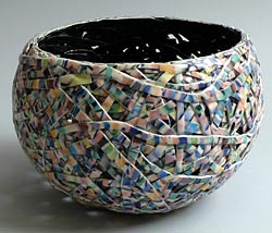 These pieces grew out of experiments in coloring, rolling, cutting, and forming clay into basket-like shapes.